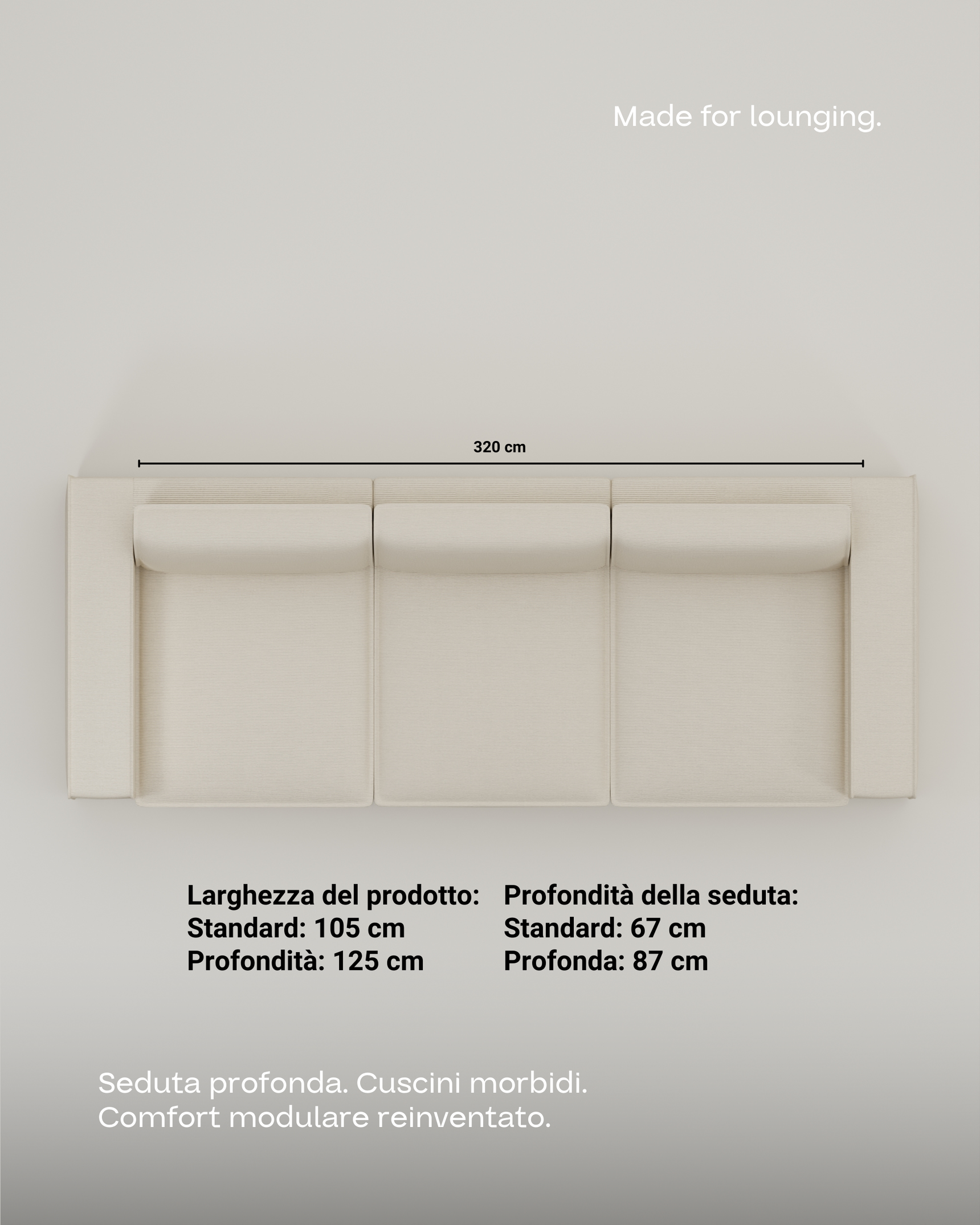 Il divano è modulare. Ciò significa che potete sistemare e riorganizzare tutte le parti a vostro piacimento e creare un paesaggio di benessere completamente nuovo. Che si tratti di un trasloco o di una ristrutturazione, il divano non ha limiti!