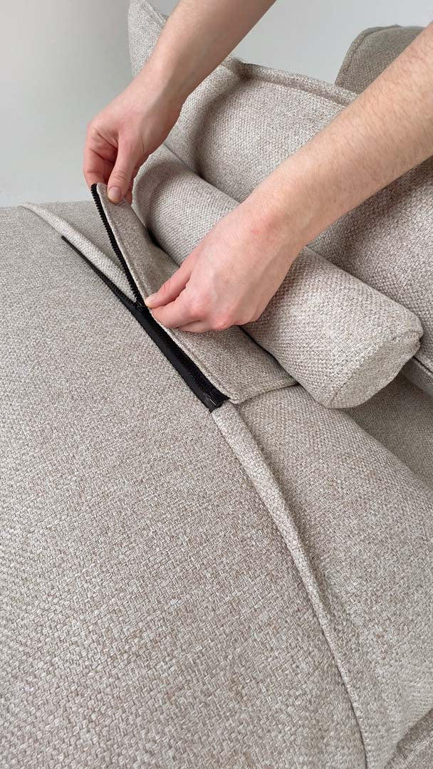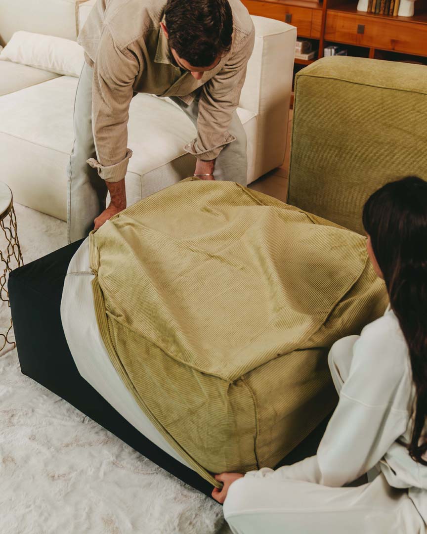 Dank starkem Industrieklett haften die Sofa-Module fest aneinander, ohne zu verrutschen. Einfach andrücken, schon bleibt alles stabil – bis du dein Sofa neu arrangieren möchtest. Dann löst du die Klettverbindung mit einem Griff und stellst die Elemente ganz flexibel um.