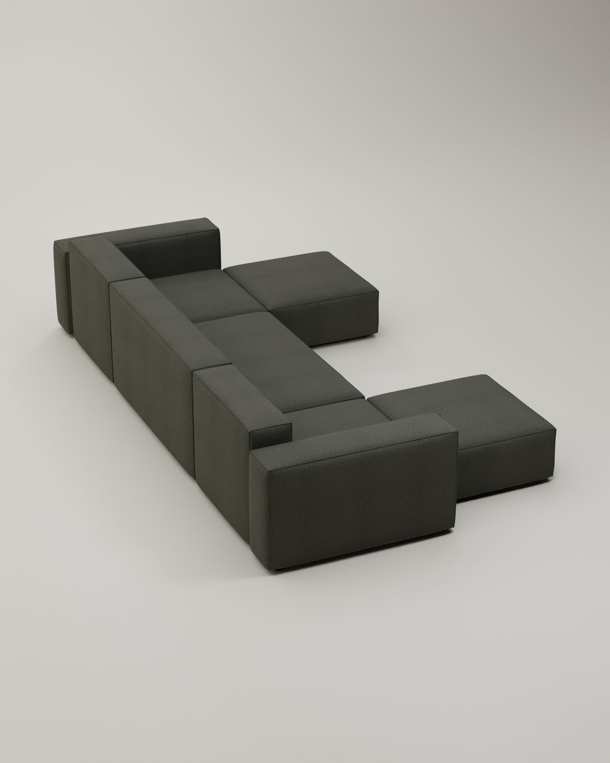 Das Sofa ist modular. Du kannst also alle Teile beliebig anordnen, umstellen und dir eine komplett neue Wohlfühllandschaft bauen. Egal ob Umzug oder Umbau, dein Sofa setzt dir keine Grenzen!